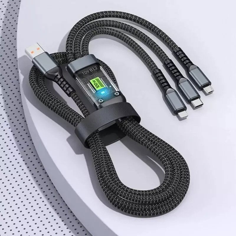 100W Fast Charging Cable Multi Charger Universal 3 In 1 Charging Cord Adapter Type C / USB Micro / Lightning
