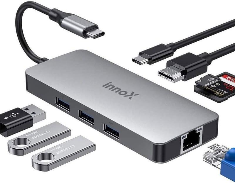 innoX USB-C 8in1 Docking Station for Laptops, USB Multiport Adapter, 4K HDMI, Gigabit Ethernet, USB 3.0 Ports, 100W PD Charging